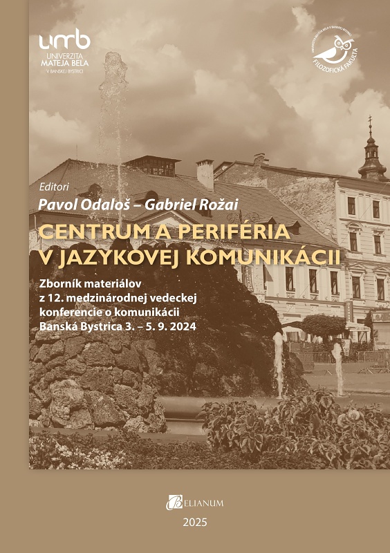 Bibliografia: ODALOŠ, Pavol – ROŽAI, Gabriel (eds.): Centrum a periféria v jazykovej komunikácii. Zborník materiálov z 12. medzinárodnej vedeckej konferencie o komunikácii Banská Bystrica 3. – 5. 9. 2024. Banská Bystrica: Belianum, vydavateľstvo Univerzity Mateja Bela v Banskej Bystrici 2025. 329 s. ISBN 978-80-557-2261-0 [tlač], 978-80-557-2262-7 [online].